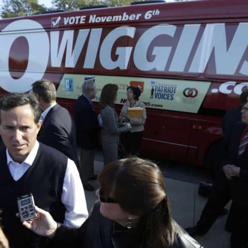 Patriot Voices, a Western Pennsylvania-based nonprofit organization co-founded by Santorum, has given $25,000 to the campaign against Wiggins. The National Organization for Marriage, a nonprofit group that opposes same-sex marriage, has spent more than $135,000 on television ads attacking Wiggins.